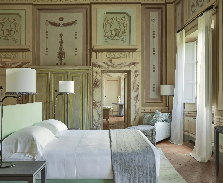 COMO Castello Del Nero: Spa serenity and sleek design in a 12th-century castle. This decadent estate blends medieval character with COMO’s signature wellness-forward vibe. Clean-lined rooms, countryside views, and world-class massages await.
